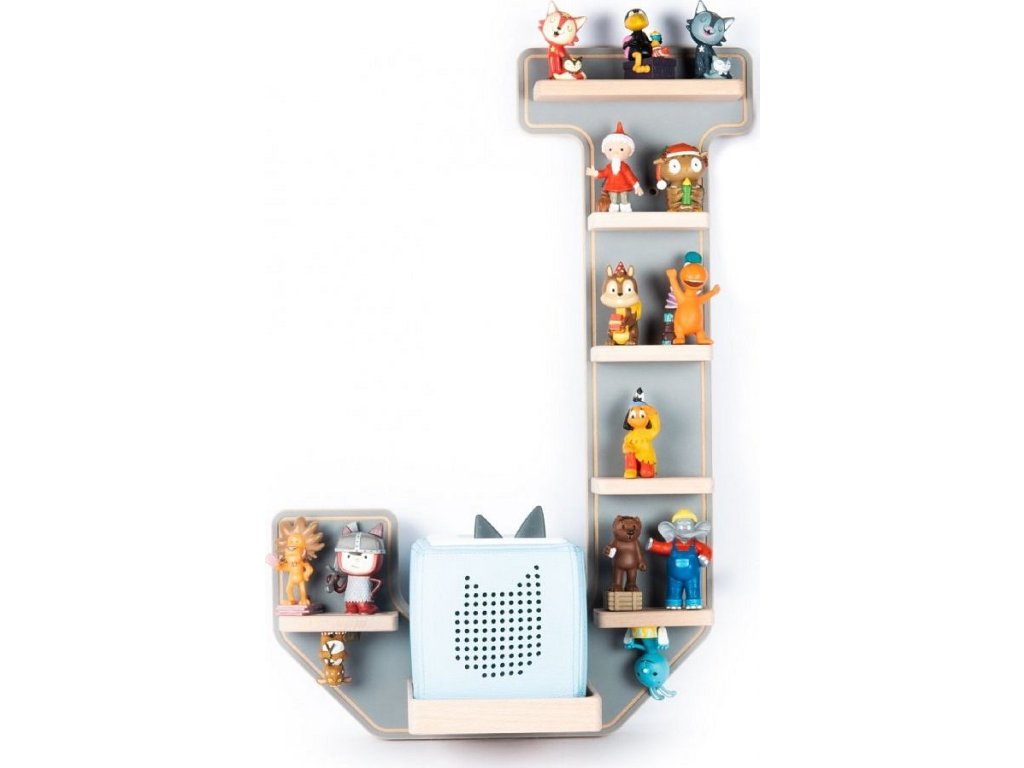 BOARTI - police pro Toniebox a cca 26 Tonies. Designér vyvinul tuto nástěnnou polici pro všechny, kdo milují písmena. Police ve tvaru písmene je skutečným dekorativním prvkem a nejenže rozzáří dětem oči. BOARTI s písmeny ve vysokoškolském stylu - to je okamžitě jasné každému, kdo vlastní Toniebox a kolekci! Jasná nástěnka do dětského pokoje. Uklizená a stylová: zde nacházejí své místo nabíjecí stanice a figurky. Už žádné poletující figurky. Designér standardně integroval kovové lišty, které figurky bezpečně upevní k poličce a zajistí, že zůstanou na místě. BOARTI je značka rodinné firmy VCM, která se od 70. let 20. století specializuje na design, výrobu a prodej nábytku s férovým poměrem cena/výkon a již zkrášlila miliony domácností.