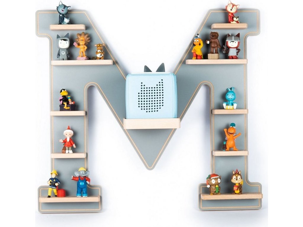 BOARTI - police pro Toniebox a cca 48 Tonies. Designér vyvinul tuto nástěnnou polici pro všechny, kdo milují písmena. Police ve tvaru písmene je skutečným dekorativním prvkem a nejenže rozzáří dětem oči. BOARTI s písmeny ve vysokoškolském stylu - to je okamžitě jasné každému, kdo vlastní Toniebox a kolekci! Jasná nástěnka do dětského pokoje. Uklizená a stylová: zde nacházejí své místo nabíjecí stanice a figurky. Už žádné poletující figurky. Designér standardně integroval kovové lišty, které figurky bezpečně upevní k poličce a zajistí, že zůstanou na místě. BOARTI je značka rodinné firmy VCM, která se od 70. let 20. století specializuje na design, výrobu a prodej nábytku s férovým poměrem cena/výkon a již zkrášlila miliony domácností.