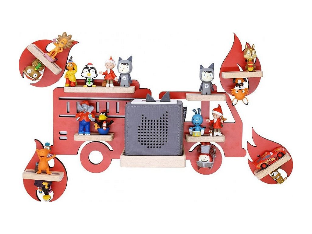 BOARTI - police pro Toniebox a cca 40 Tonies. Designér vyvinul tuto nástěnnou poličku pro všechny fanoušky hasičského sboru. Je to vrchol pro všechny fanoušky hasičského sboru, který nás vezme s sebou na vzrušující mise a nejenže rozzáří dětem oči. BOARTI s jedinečným designem - to je okamžitě jasné každému, kdo vlastní Toniebox a kolekci! Jasná nástěnka do dětského pokoje. Úhledná a stylová: zde nacházejí své místo nabíjecí stanice a figurky. Už žádné poletující figurky. Designér standardně integroval kovové lišty, které figurky bezpečně upevní k poličce a zajistí, že zůstanou na místě. BOARTI je značka rodinné firmy VCM, která se od 70. let 20. století specializuje na design, výrobu a prodej nábytku s férovým poměrem cena/výkon a již zkrášlila miliony domácností.