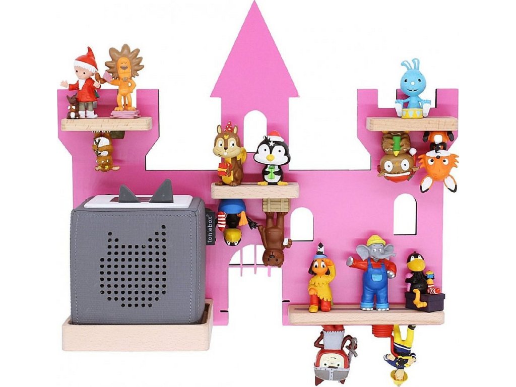 BOARTI - police pro Toniebox a cca 28 Tonies. Designér vyvinul tuto nástěnnou polici pro všechny domácí kamarády. Nástěnná police vás ponoří do světa princů a princezen a nejenže rozzáří dětem oči. BOARTI s jedinečným designem - to je okamžitě jasné každému, kdo vlastní Toniebox a kolekci! Jasná nástěnka do dětského pokoje. Uklizená a stylová: zde nacházejí své místo nabíjecí stanice a figurky. Už žádné poletující figurky. Designér standardně integroval kovové lišty, které figurky bezpečně upevní k poličce a zajistí, že zůstanou na místě. BOARTI je značka rodinné firmy VCM, která se od 70. let 20. století specializuje na návrh, výrobu a prodej nábytku s férovým poměrem cena/výkon a již zkrášlila miliony domácností.