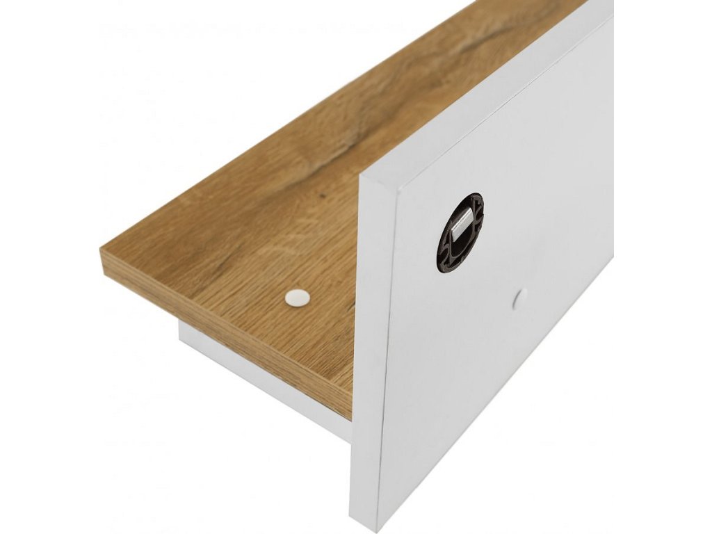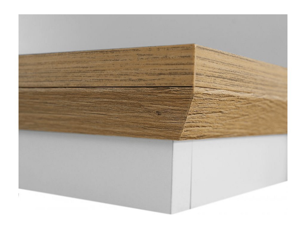 Materiál: DTD laminovaná / ABS hrany Barva: bílá / dub grand Rozměry (ŠxHxV): 120x19x20 cm Tloušťka materiálu: 40 mm Otevřený úložný prostor elegantní V provensálském stylu Dodávané v demontu