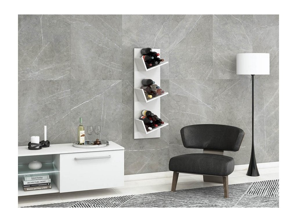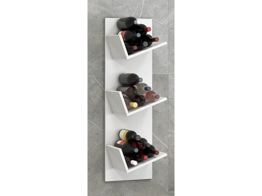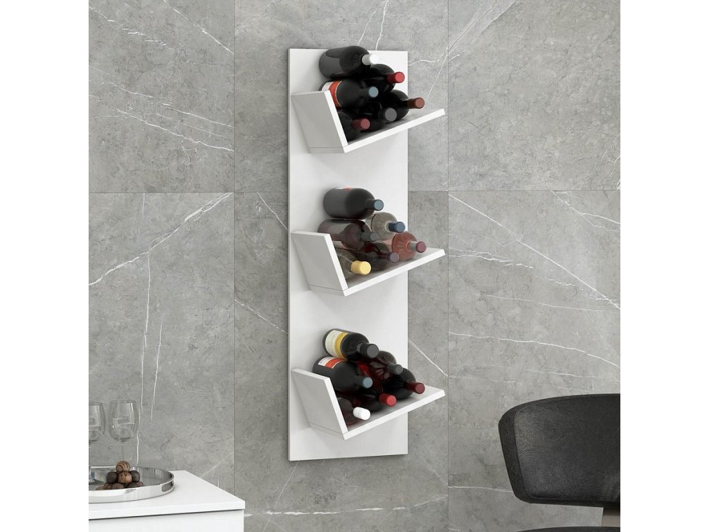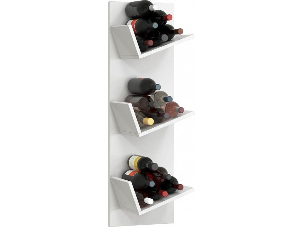 Zejména milovníci vína ocení tuto originální polici se 3 oddíly, které umožňují horizontální skladování až 18 lahví vína. Nástěnnou vinotéku lze neomezeně rozšiřovat připojením dalších polic.