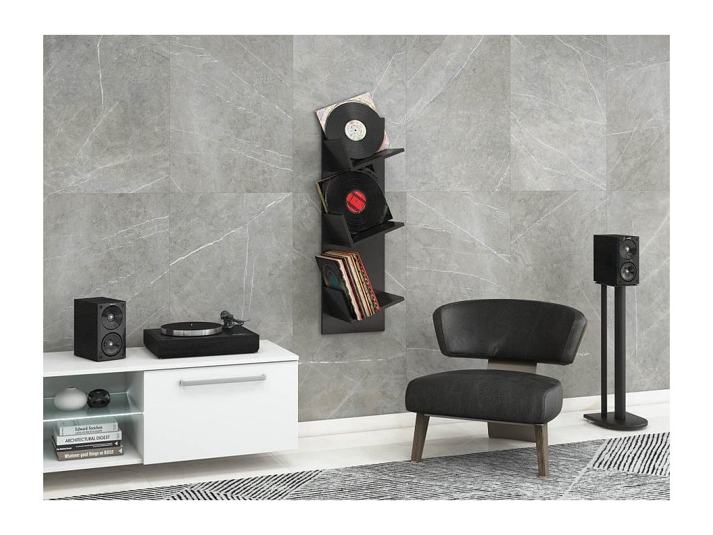 Zejména fanoušci vinylových desek ocení, až se jejich poklady stanou originální ozdobou jejich stěn. Tři oddíly originálního tvaru umožňují uložení až 100 LP desek. Lze neomezeně rozšiřovat propojováním.