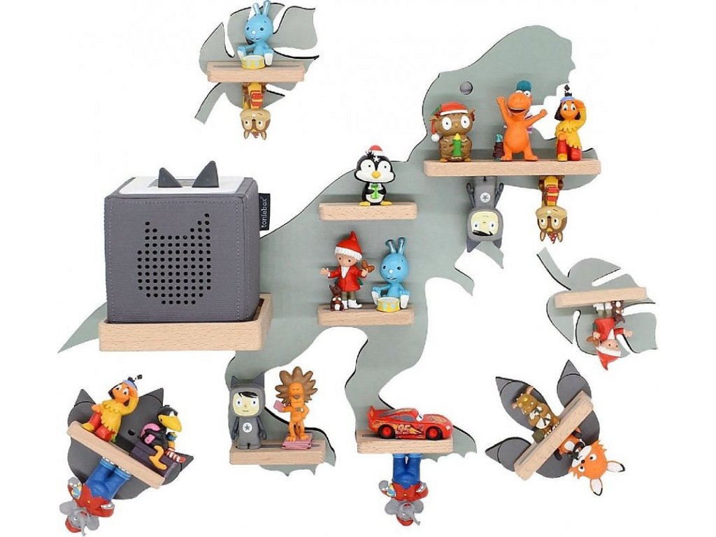 BOARTI - police pro Toniebox a cca 45 Tonies. Designér vyvinul tuto nástěnnou polici pro všechny fanoušky dinosaurů. Dinosaurus promění dětský pokoj v pravěkou džungli a nejenže dětem rozzáří oči. BOARTI s jedinečným designem - to je okamžitě jasné každému, kdo vlastní Toniebox a kolekci! Jasná nástěnka do dětského pokoje. Uklizená a stylová: zde nacházejí své místo nabíjecí stanice a figurky. Už žádné poletující figurky. Designér standardně integroval kovové lišty, které figurky bezpečně upevní k poličce a zajistí tak, aby zůstaly na místě. BOARTI je značka rodinné firmy VCM, která se od 70. let 20. století specializuje na design, výrobu a prodej nábytku s férovým poměrem cena/výkon a již zkrášlila miliony domácností.