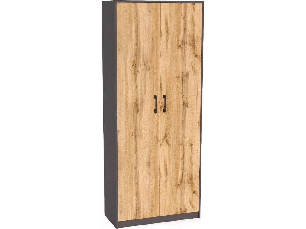 CASA 53012 Šatní skříň 2-dveřová s policemi. Korpus i dvířka jsou z kvalitního lamina. Lamino je odolné proti poškrábání, poškození, vlhkosti a vysokým teplotám. Korpus je v barevném provedení grafit a dvířka jsou v barvě dub wotan. Dodáváme v demontovaném stavu.