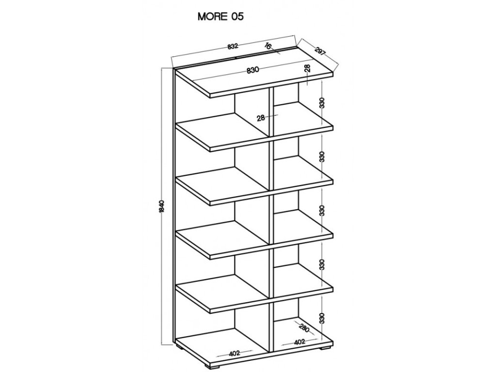 Policový regál Marek můžete využít mnoha způsoby. Může sloužit například jako dělící stěna k oddělení zóny v pokoji, jako knihovna, nebo regál na hračky či dekorace. Regál je vyrobený z lamina tloušťky 28 mm s hranami ABS 0,4 mm, které je odolné a snadné na údržbu. Regál je dodávaný v demontu. Součástí balení je montážní návod, včetně všech potřebných spojovacích prvků. Rozměry : š. 83,2 cm, v. 184 cm, hl. 29,7 cm