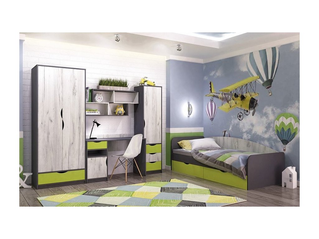 CASA 52003 Regál se třemi zásuvkami v barevném moderním provedení. Nábytek je vyroben z kvalitní desky LTD, korpus je v kombinaci barev dub kraft bílý/šedý grafit, dvířka jsou v kombinaci barev dub kraft bílý/limeta. Dodáváme v demontovaném stavu.