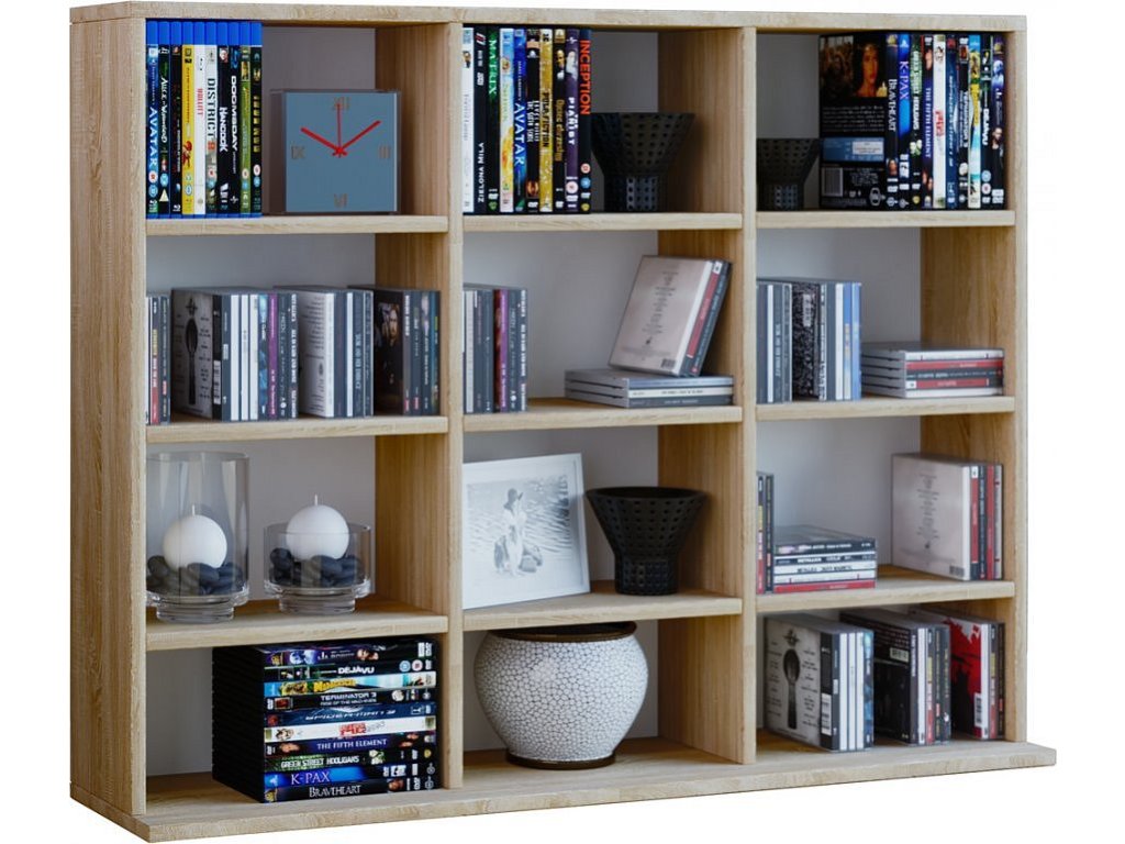 Policový regál Megosa Mini nabízí 12 otevřených polic s velkorysou možností archivace CD, DVD, VHS a dalších vašich sbírek. Korpus s povrchem se strukturou dřeva.