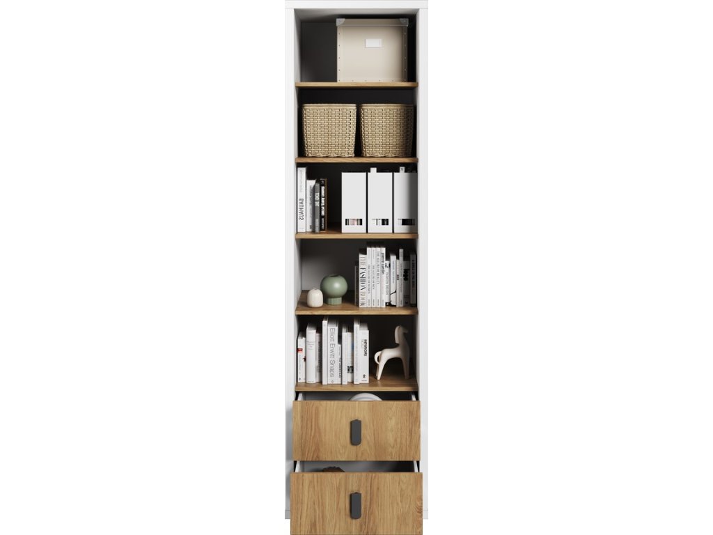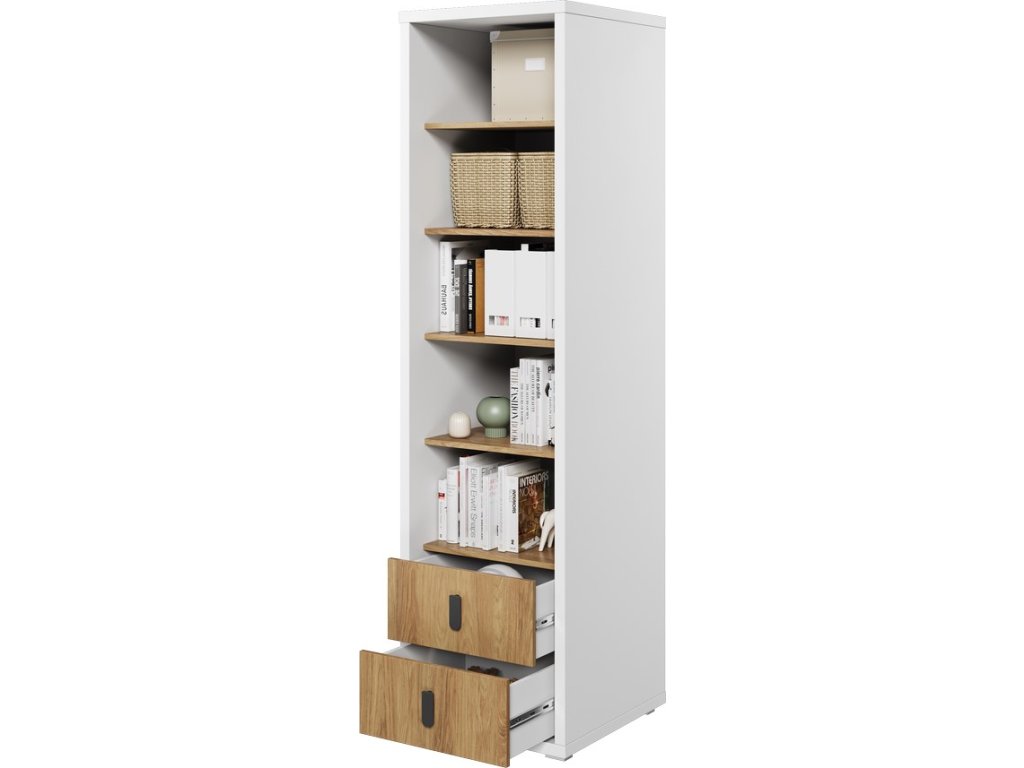 CASA 73033 Policový regál se dvěma zásuvkami v jemném přírodním stylu. Korpus je vyroben z desky LTD v barvě bílá, zásuvky a police jsou vyrobeny z desky LTD v barvě ořech natural. Dodáváme v demontovaném stavu.