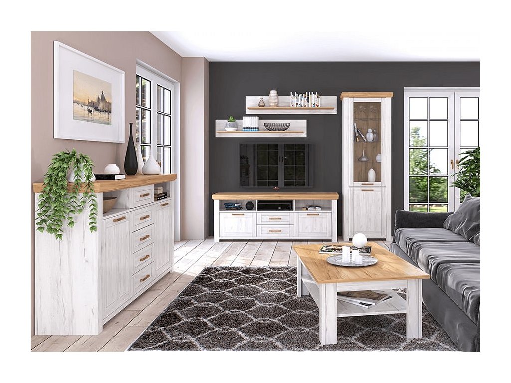 Policový regál SUDBURY R s dvířky, dub craft zlatý/dub craft bílý
