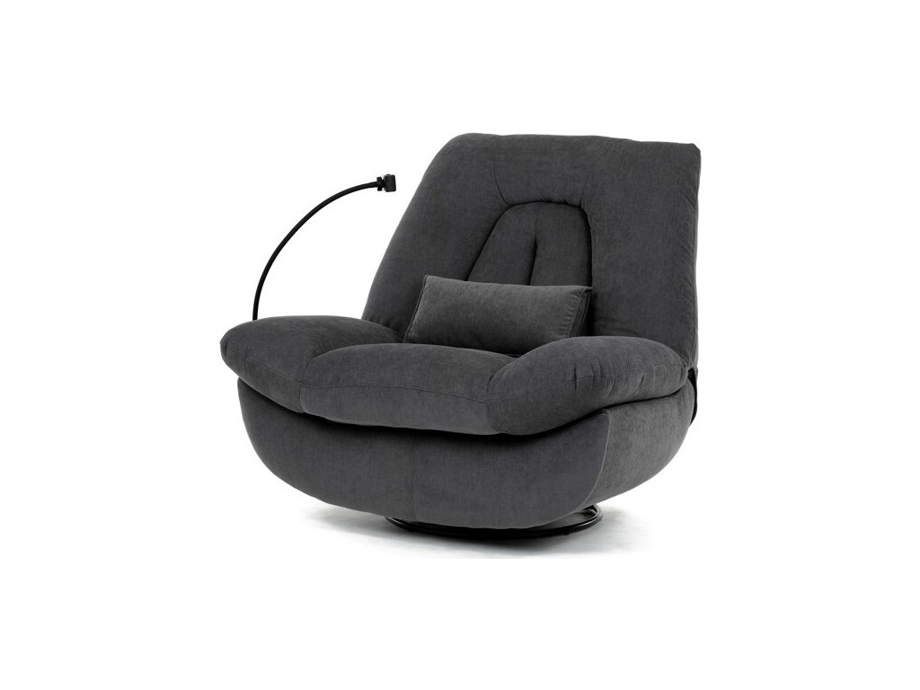 Polohovací elektrické křeslo v šedé látce nabízí komfortní sezení s možností nastavení polohy díky dvěma samostatným motorům. Robustní kovová základna umožňuje rotaci až do 240° a zároveň funkci houpání s úhlem 30°, což přispívá k relaxaci a variabilitě užívání. Zabudované ovládání je intuitivní a doplněné o USB-A a USB-C porty pro snadné nabíjení elektronických zařízení. Praktický úložný box integrovaný v křesle poskytuje prostor pro drobnosti, zatímco držák telefonu zvyšuje uživatelský komfort. Polstrované područky a ergonomicky tvarované opěradlo s přidaným polštářkem podporují správné držení těla, přičemž nosnost křesla je 160 kg.