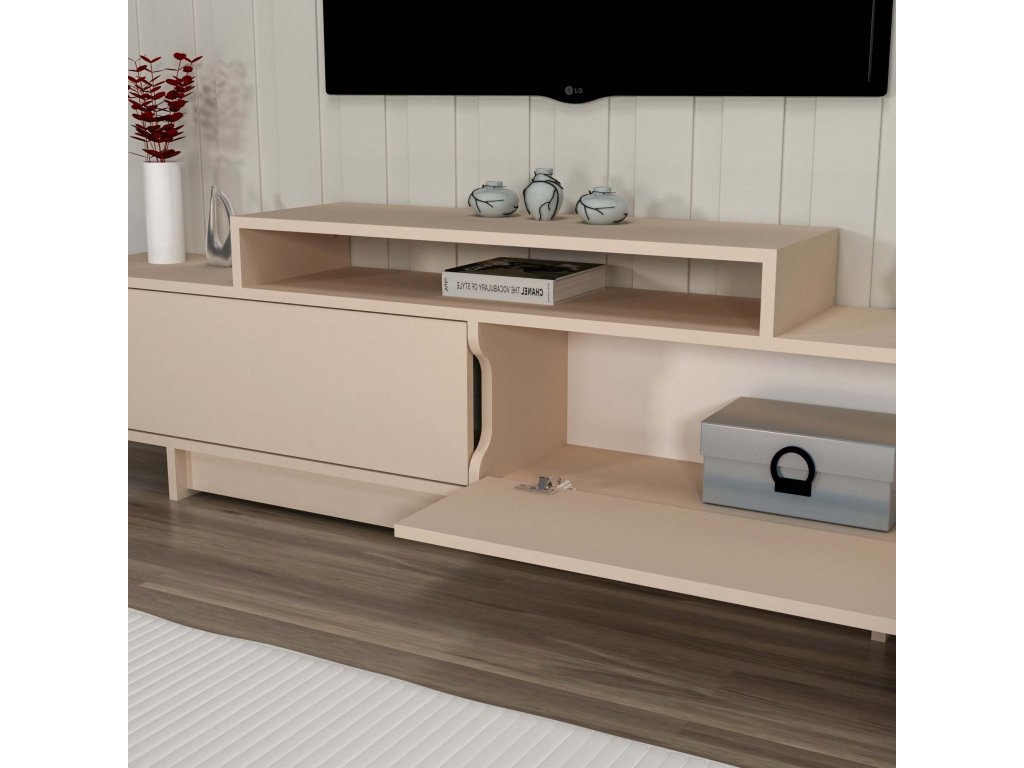 Stolek kombinuje funkčnost a estetiku, díky čemuž je skvělou volbou pro organizaci a dekoraci vašeho obývacího prostoru. Jeho kvalitní materiály zajišťují dlouhou životnost a jednoduchou údržbu. Pořiďte si TV stolek a dodejte svému interiéru moderní a praktický nábytek!