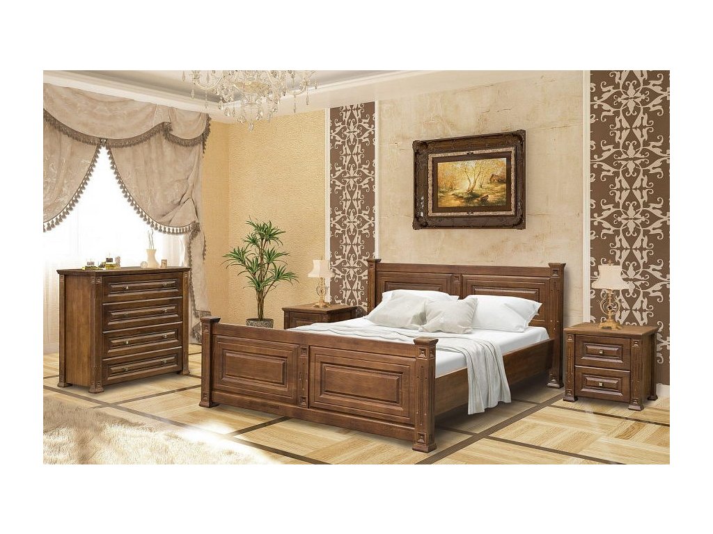 CASA 97051 Postel šíře 160 cm z ložnicové řady dokonale doplní váš interiér. Postel je vyrobena z masivního dubového dřeva s vyřezávaným dekorem v barevném provedení ořech. Rošt je součástí postele. V ceně není zahrnuta matrace, je možno ji dokoupit. Vhodný rozměr 160 x 200 cm nebo 2 ks 80 x 200 cm. Nabídka komponentů této řady umožňuje sestavit si nábytek do ložnice dle vlastních představ. Dodáváme v demontovaném stavu.