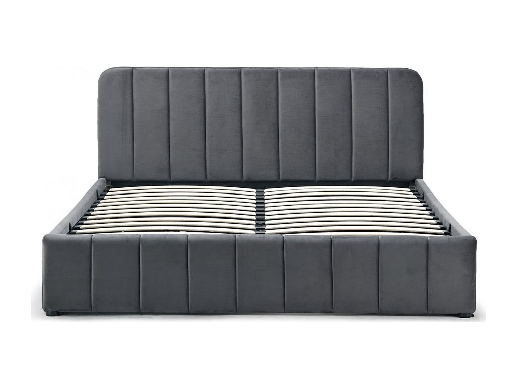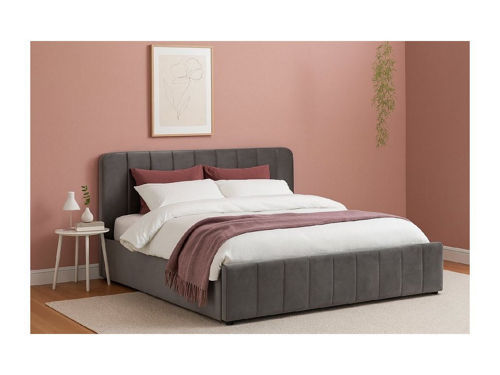 Kvalitní konstrukce a pevné materiály zaručují dlouhou životnost a stabilitu, zatímco sametový potah v šedém odstínu vnese do ložnice pocit útulnosti a stylu.