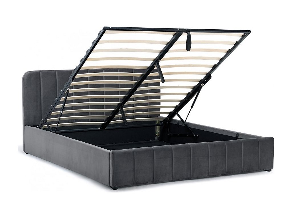 Díky výklopnému lamelovému roštu poskytuje postel velkorysý úložný prostor, kam snadno uložíte lůžkoviny, deky nebo sezónní oblečení.