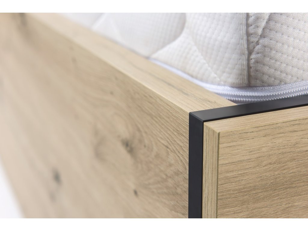 Postel BARBUS 140x200 s úložným prostorem, dub artisan/černá