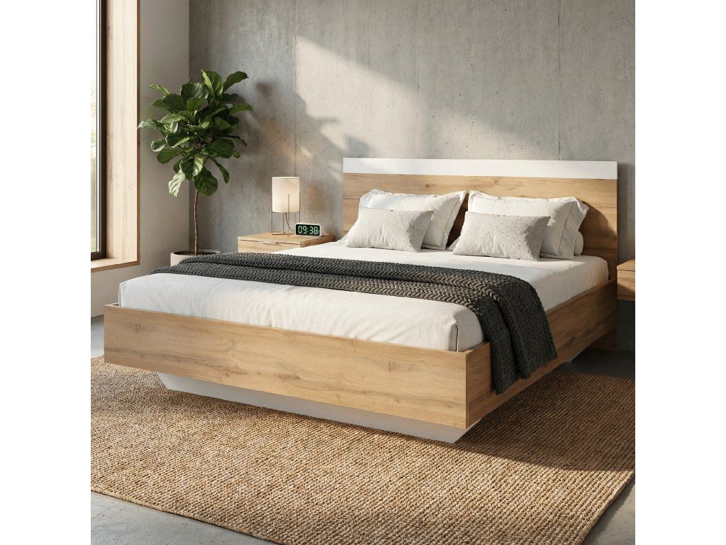 Postel, 180x200, GABRIELA Materiál: DTD laminovaná Barva: dub wotan / bílá Rozměry (ŠxHxV): 183,6x203,2x90 cm Postel dodávána bez roštu a matrace. K posteli doporučujeme zakoupit rošt Monna a matraci o rozměru 180x200 cm z naší nabídky. Dodávané v demontu.