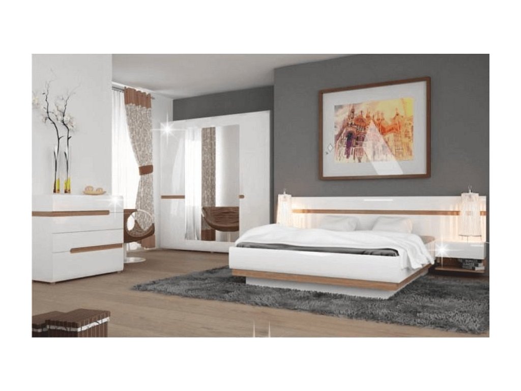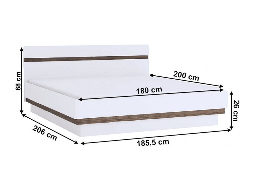 Postel LYNATET 93, 180x200, bílá lesk/dub sonoma tmavý truflový