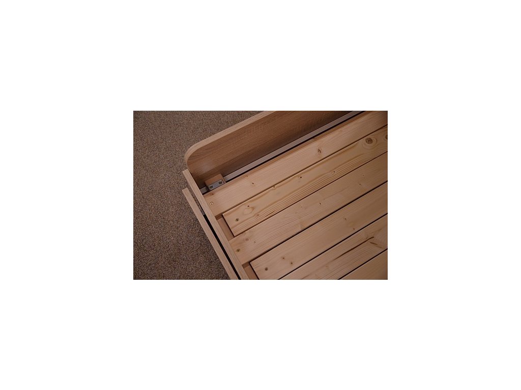 Konstrukce je vyrobena z laminované desky o tloušťce 18 mm, která zajišťuje potřebnou pevnost a odolnost. Součástí jsou dva výsuvné šuplíky s madly, které slouží jako úložný prostor například na lůžkoviny nebo hračky.
