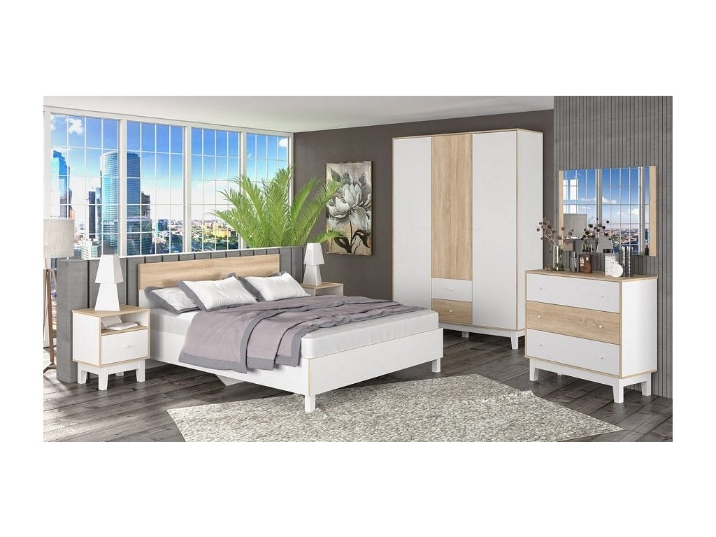 CASA 97032 Postel šíře 160 cm v moderním provedení v jemných barvách. Nábytek je vyroben z kvalitní LTD desky v barevné kombinaci bílá/dub sonoma. V ceně není zahrnut rošt ani matrace, je možné je dokoupit. Vhodný rozměr matrace je 160 x 200 cm nebo 2 ks 80 x 200 cm. Dodáváme v demontovaném stavu.