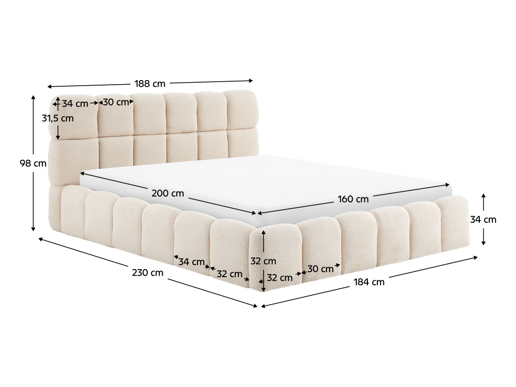 Postel s kovovým roštem a úložným prostorem, 160x200, béžová, SORELA