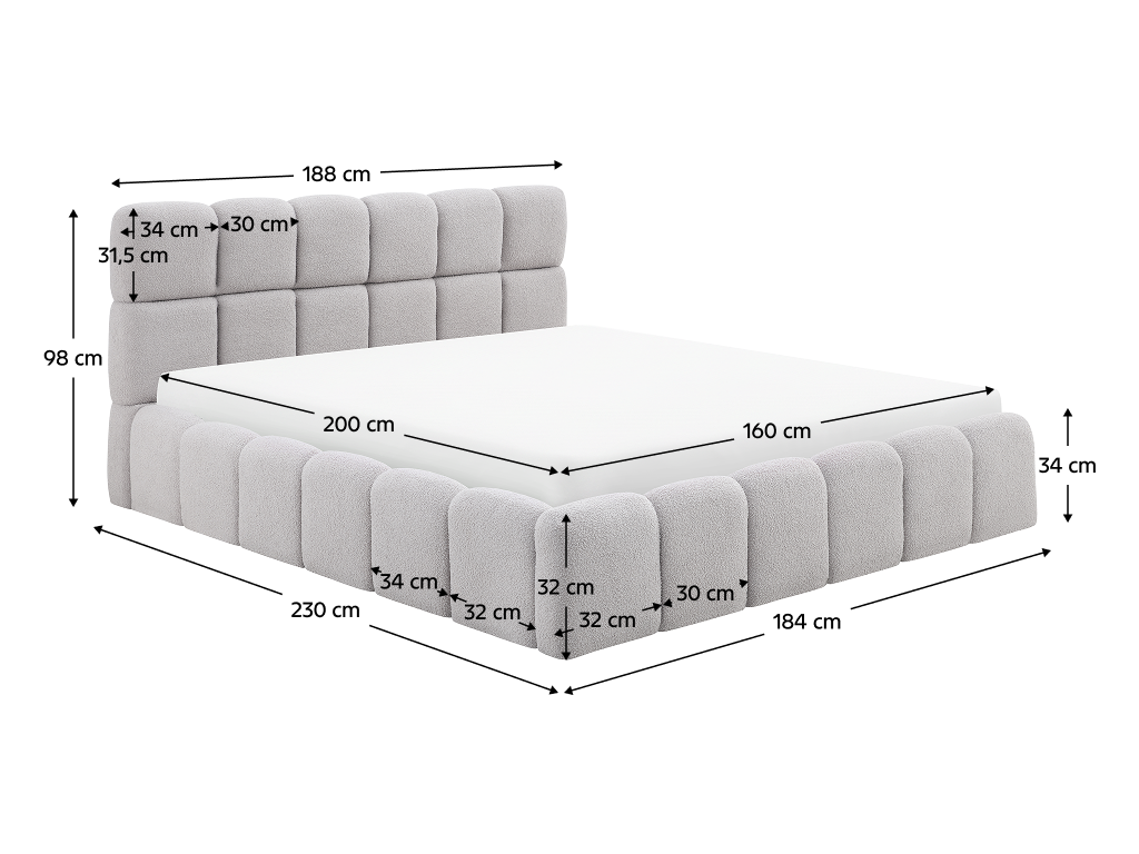 Rozměry (ŠxHxV): 188x230x98 cm