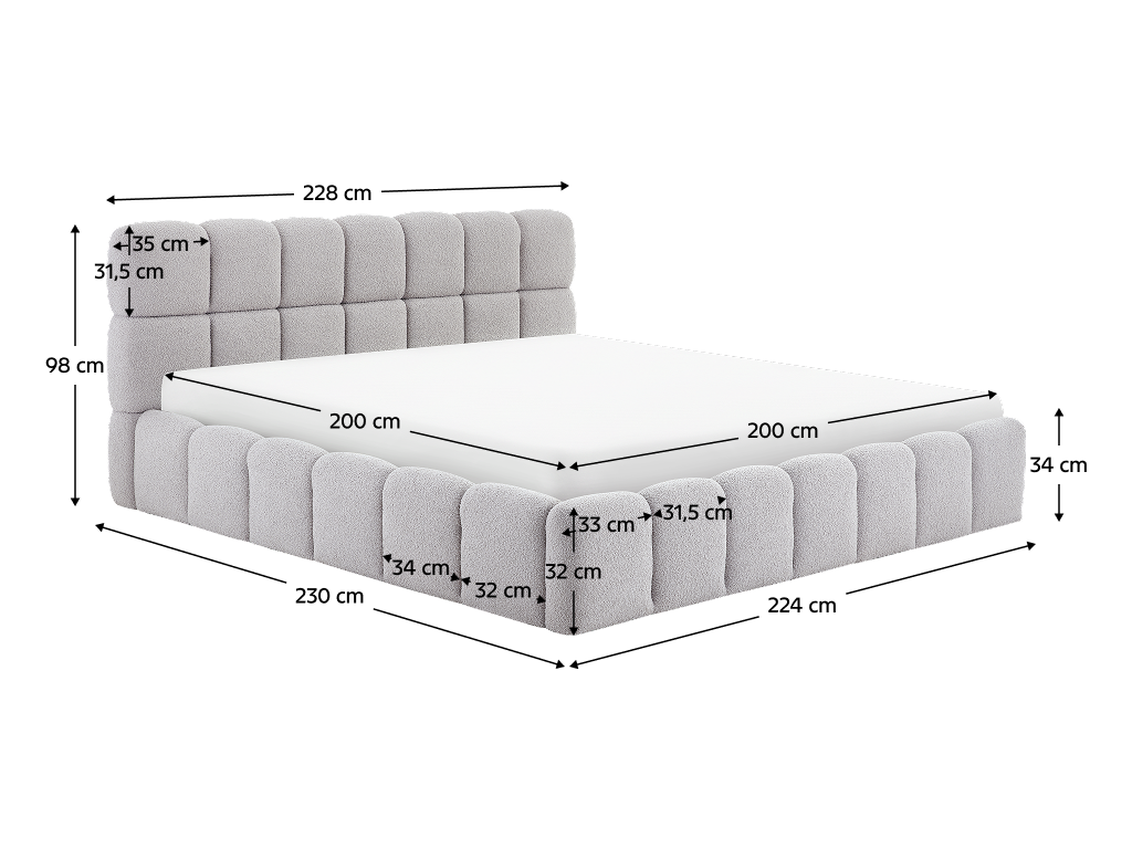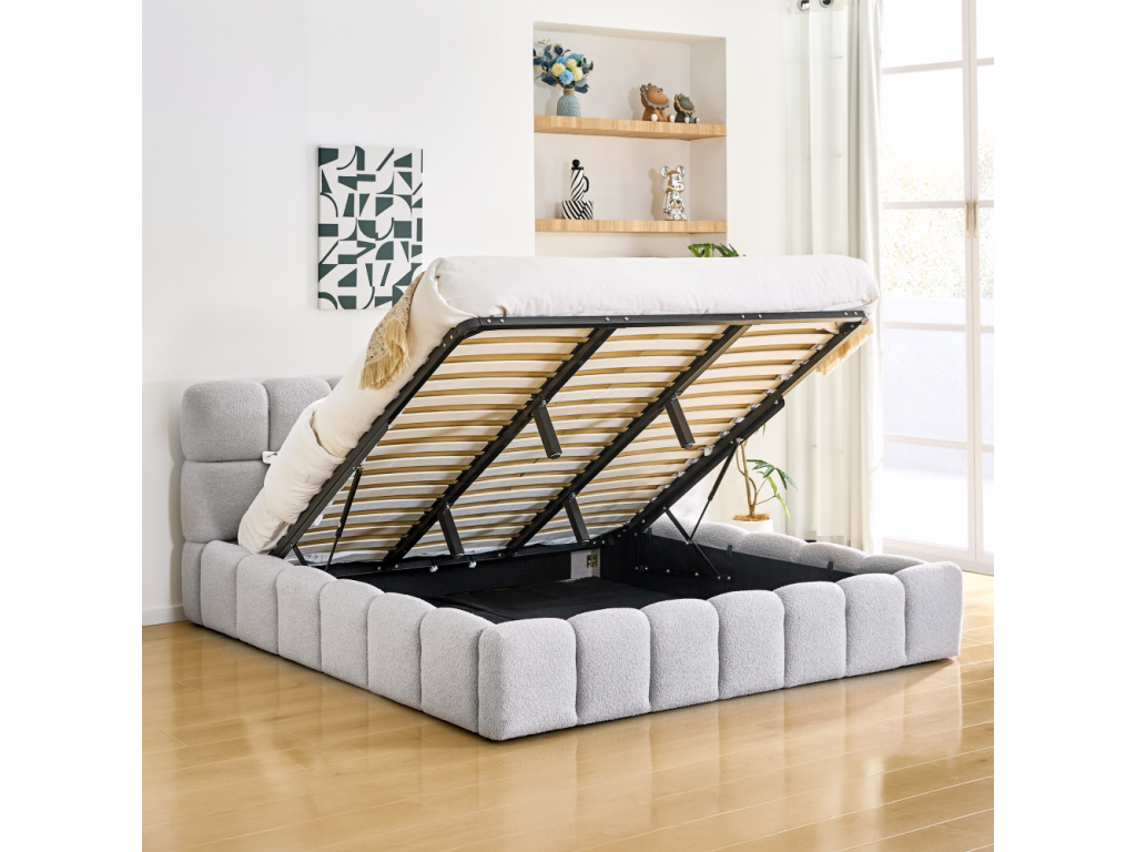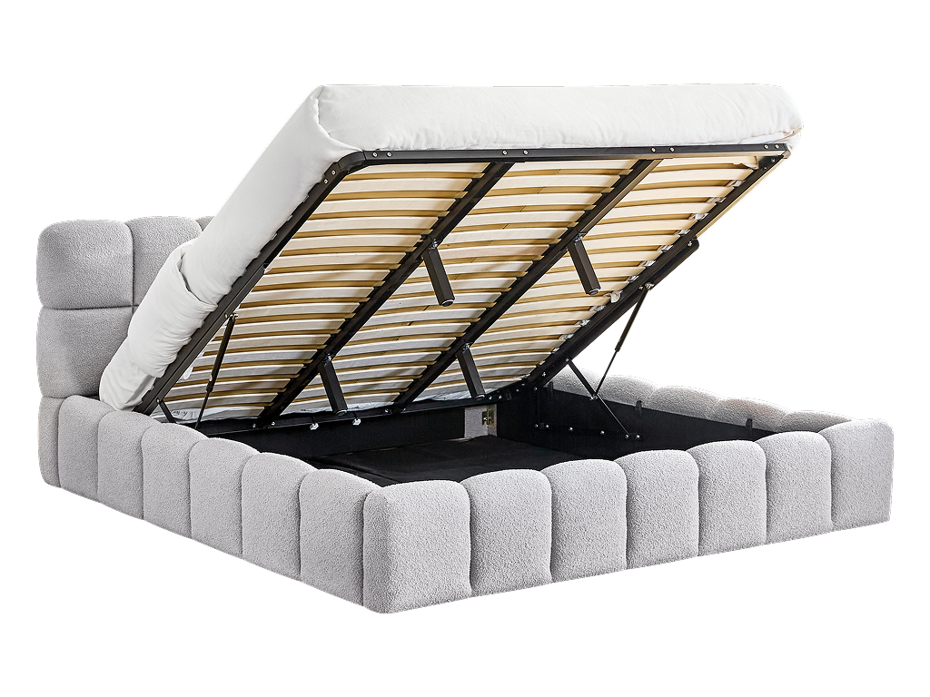 Postel s kovovým roštem a úložným prostorem, 200x200, šedá, SORELA