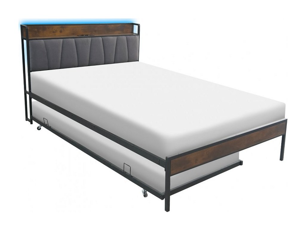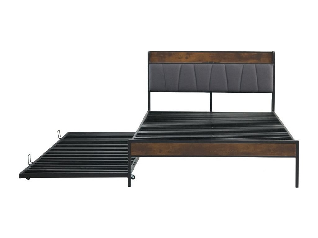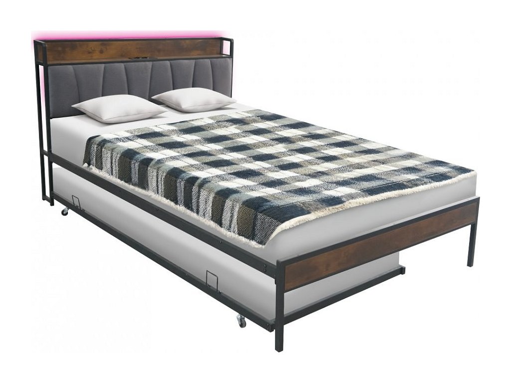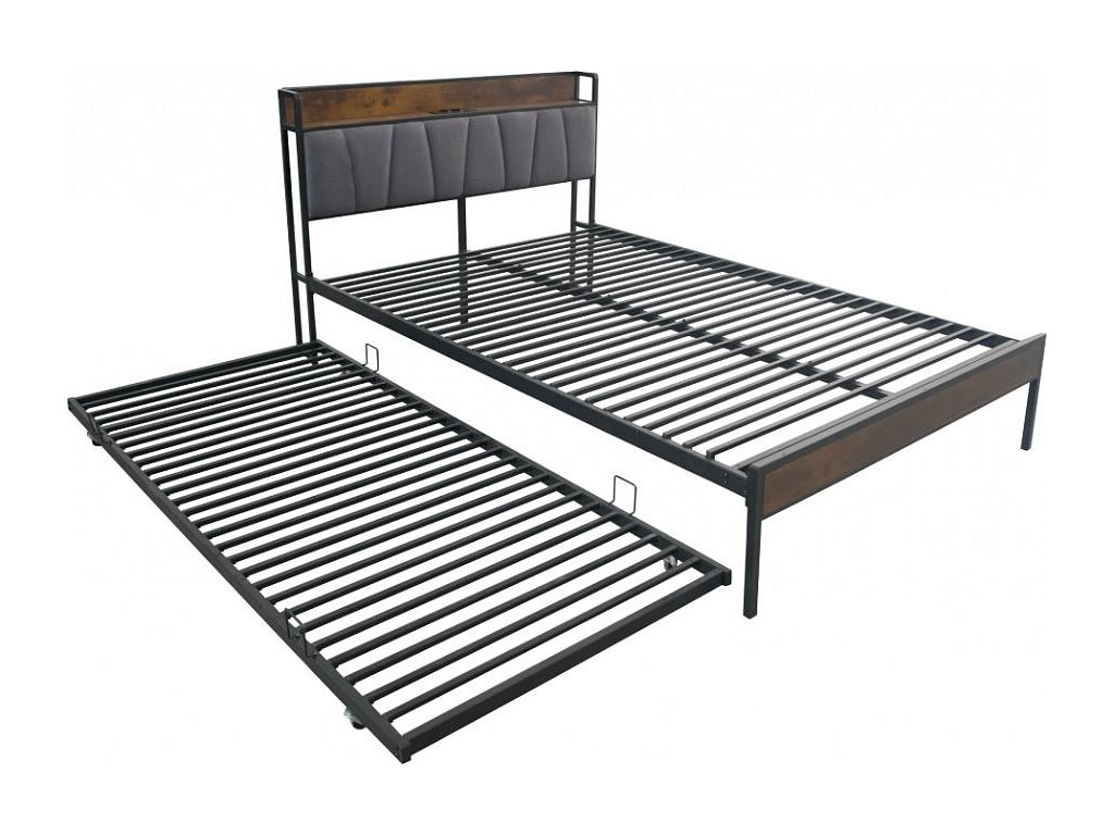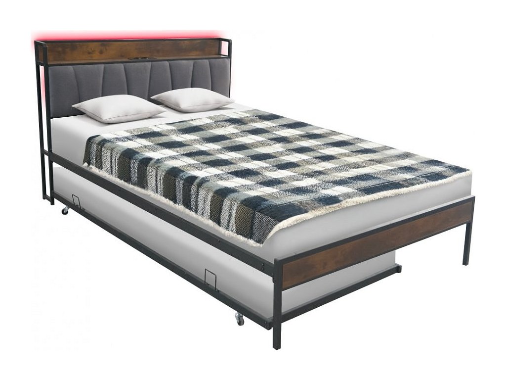 Postel s roštem a výsuvnou přistýlkou, 140x200, černá/šedá, NORDO