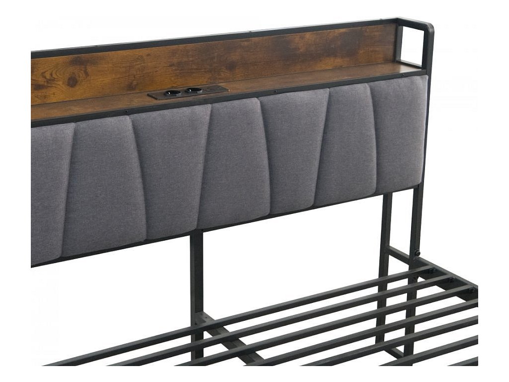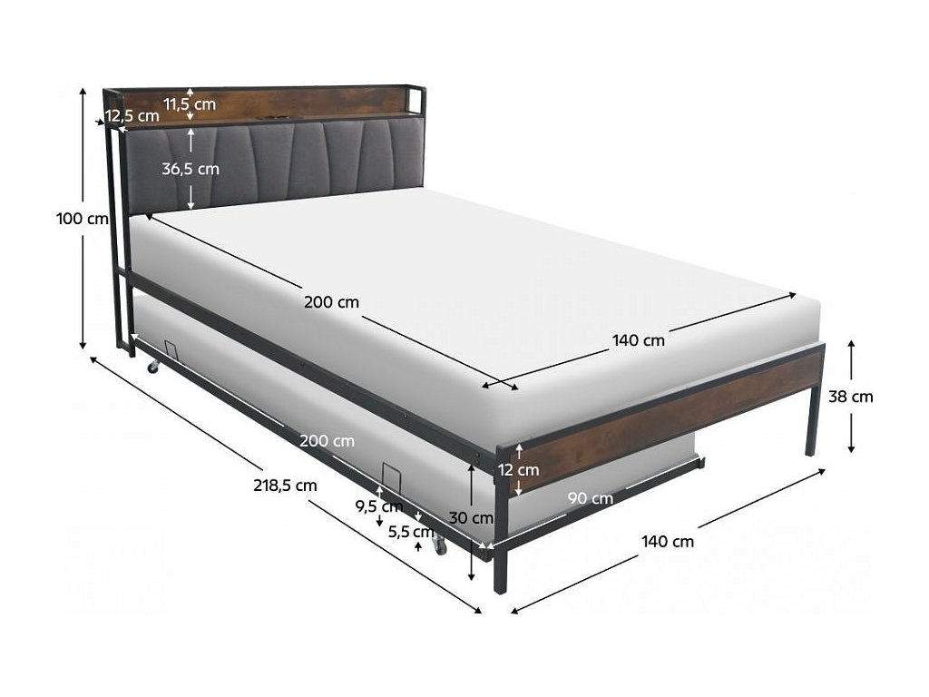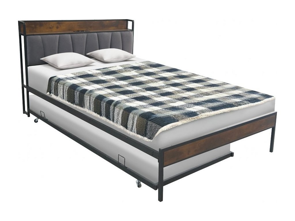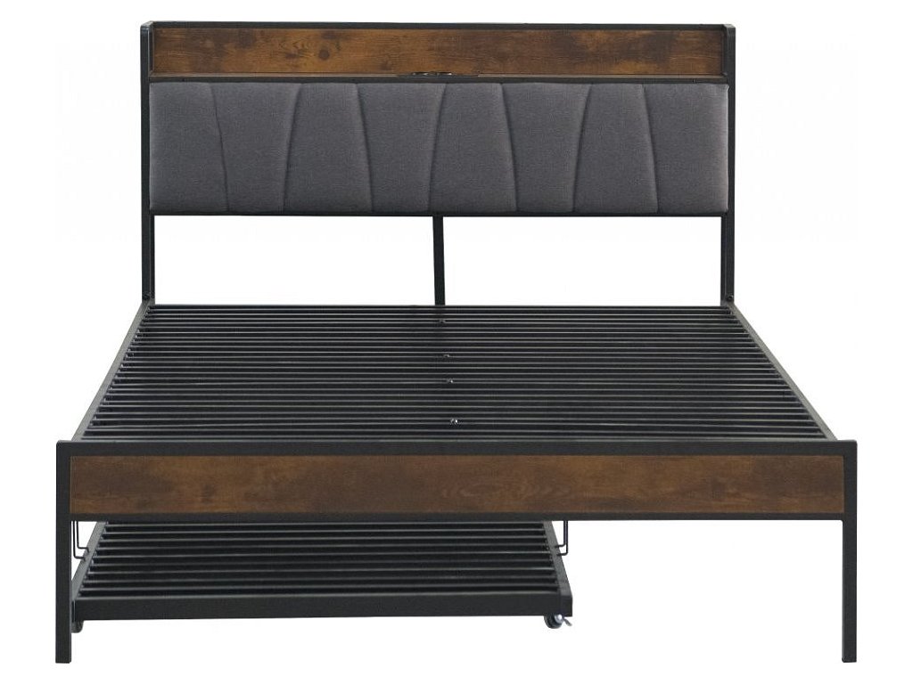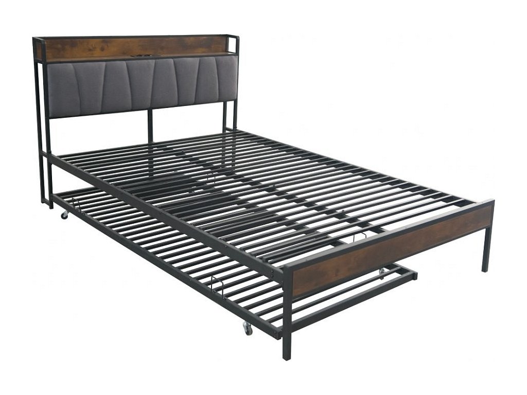 Postel s roštem a výsuvnou přistýlkou, 140x200, černá/šedá, NORDO