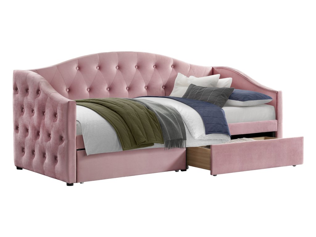 Postel s úložným prostorem, 90x200, růžová Velvet látka, ZASKA