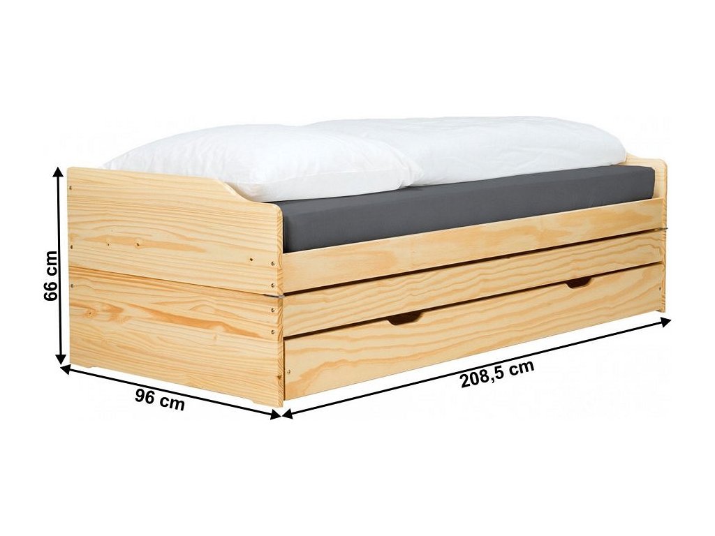 Postel s výsuvnými přistýlkami, přírodní, masiv, 90x200, FLOPY