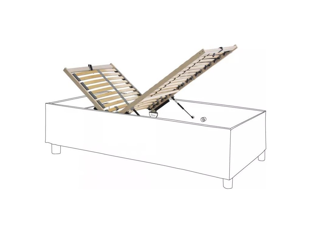 Úložný prostor lůžka se otevírá za pomoci plynových pístů od nohou postele.
