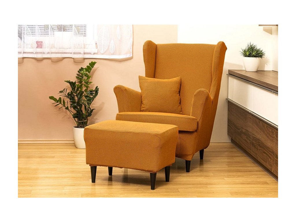 Potah na křeslo ušák s podsedákem Gisela je nejen praktický, ale dokáže provést okamžitou a příjemnou změnu ve vašem domově. Je dokonale strečový a velmi snadno se vašemu sedacímu nábytku přizpůsobí. Křeslo rázem vypadá skvěle a navíc je chráněné před poničením. Rozměry potahu přesně odpovídají ušákům vyrábějící společnost IKEA a křeslům podobné velikosti. Vlastníte-li ušák, který nemá samostatný podsedák, stačí použít pouze samotný potah na křeslo.Balení obsahuje 1 ks potahu na křeslo a 1 ks potahu na podsedák.