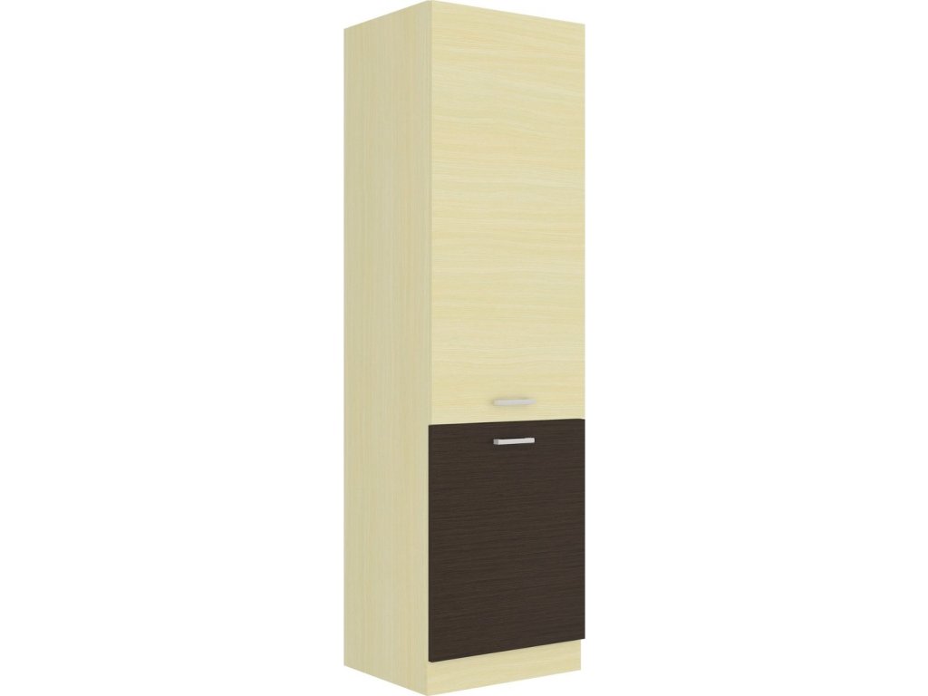 CASA 87003 Potravinová skříň - spíže CHAMONIX II vyrobená z kvalitního lamina. Korpus i sokl ( 10 cm ) jsou v barvě dub ferrara a spodní dvířka v barvě dub tmavé legno a vrchní dvířka v barvě dub ferrara. Rozměry skříňky - šířka 60 cm, výška 210 cm, hloubka 57 cm. Skříň má pravé otvírání dvířek. Úchyty jsou z plastu. V naší nabídce naleznete další výběr skříněk k sestavení celé kuchyně.