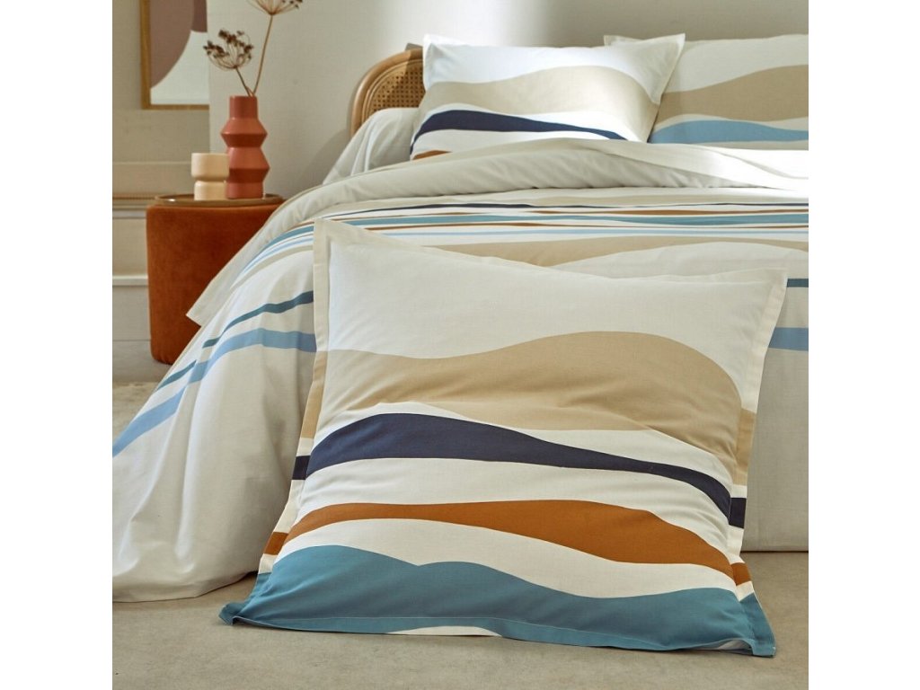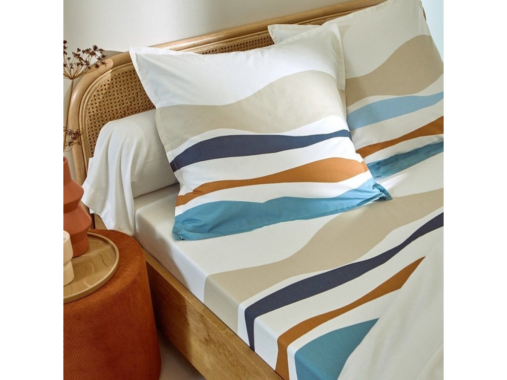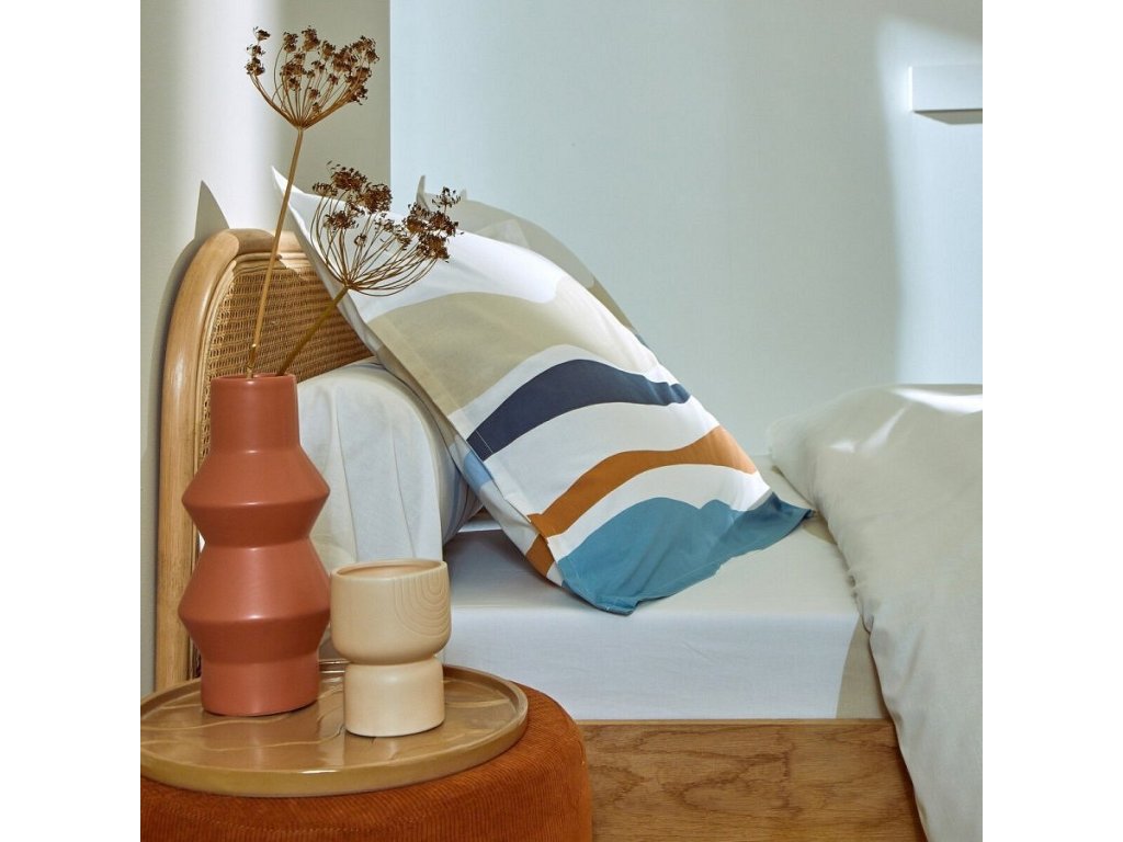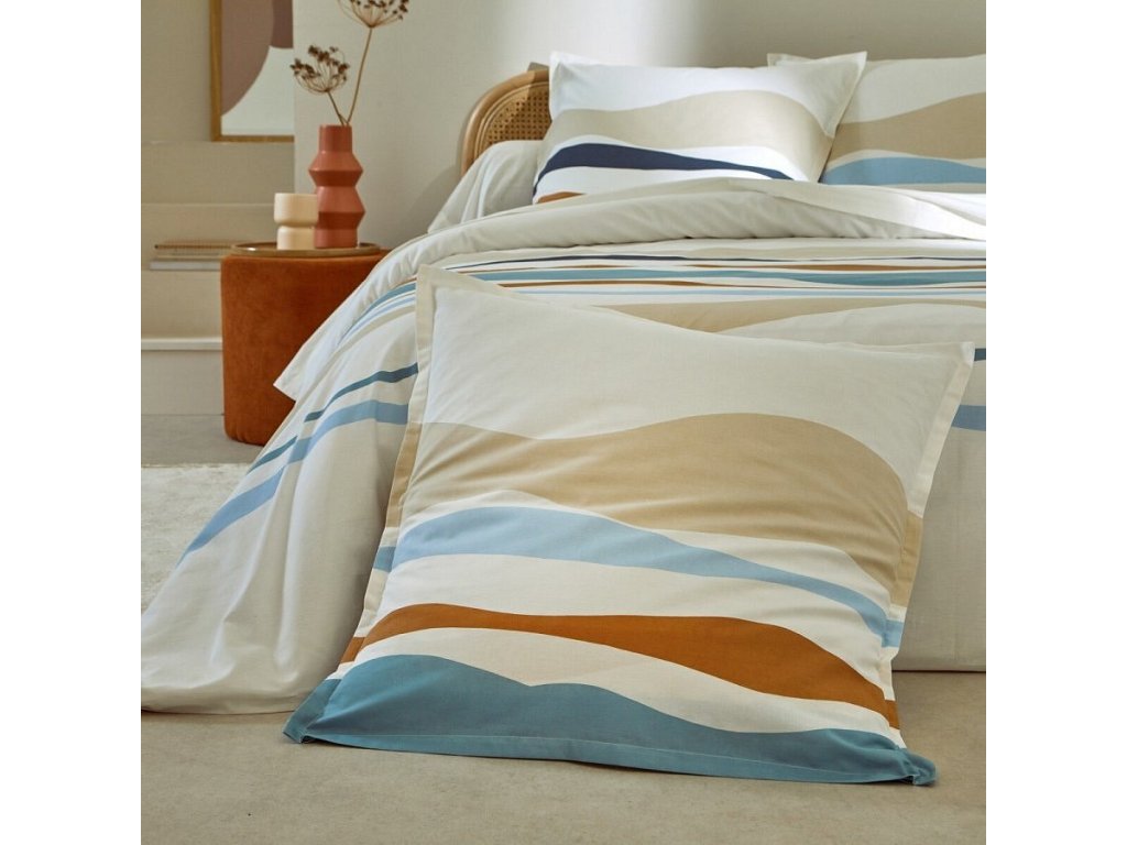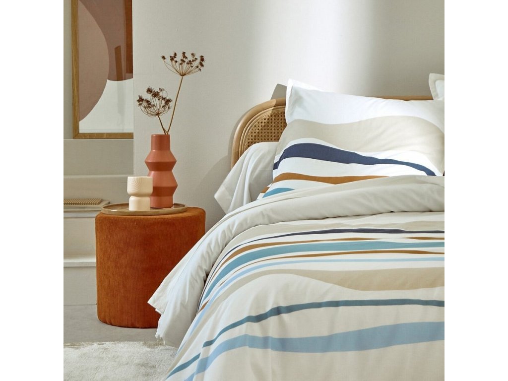 Směr klidný spánek s bavlněným povlečením Ondée zn. Colombine s potiskem vln. Z materiálu vybraného pro svou jemnost a odolnost. Pevná a pravidelná tkanina. Povlak na polštář se středovým potiskem, plochý volán (3 cm), 2 odlišné strany. Povlak na váleček se středovým potiskem. Povlak na přikrývku v typicky francouzském střihu ve tvaru lahve pro zasunutí konce pod matraci, se 2 stejnými stranami, středový potisk. Klasické prostěradlo se středovým potiskem. Napínací prostěradlo se středovým potiskem (hloubka rohů 26 cm). Exkluzivní návrh Blancheporte. Certifikát Made In Green od OEKO-TEX®. Kromě ověření několika stovek chemických látek, které přispívají k vysoké bezpečnosti, toto označení zaručuje ohleduplné výrobní principy a kontrolované společenské postupy. Pro ochranu životního prostředí doporučujeme prát na 40 °C a sušit volně na vzduchu.