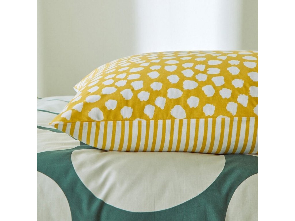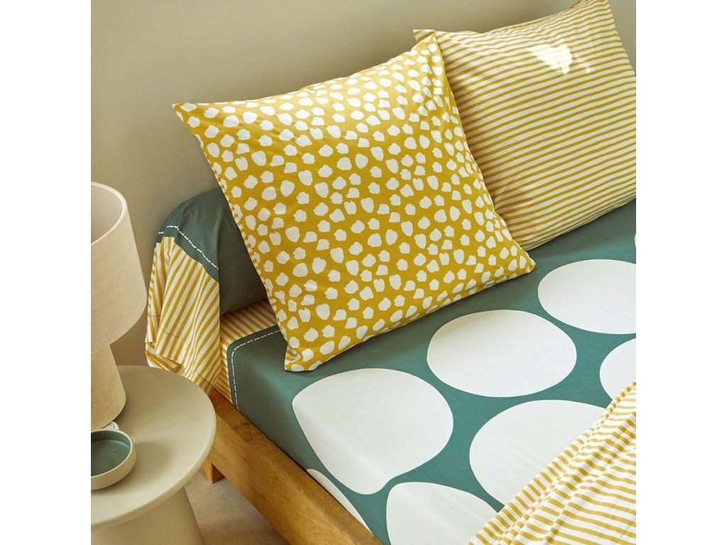 Osvěžte Váš interiér pomocí bavlněného povlečení William s grafickým aktuálním vzorem. Z materiálu vybraného pro svou jemnost a odolnost. Kolekce se souvislým potiskem. Povlak na polštář, 2 různé strany (1 strana se žlutými puntíky, 1 strana se žlutými pruhy). Povlak na váleček. Povlak na přikrývku se souvislým potiskem, s klopou, 2 stejné strany. Klasické prostěradlo se souvislým vzorem. Napínací prostěradlo. Exkluzivní návrh Blancheporte. Standard 100 podle Oeko-Tex (n° CQ 1216/1 IFTH). Tato známka označuje textilní výrobky, které byly podrobeny laboratorním testům na široké spektrum škodlivých látek a výrobek je bezpečný nad rámec platných norem. Lze prát až na 60 °C, pro ochranu životního prostředí doporučujeme prát na 40 °C a sušit volně na vzduchu.