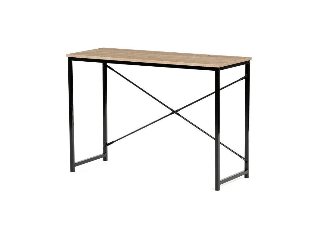 Pracovní stůl GD-504 OAK nabízí praktické řešení pro domácí i kancelářské prostředí. Deska stolu je vyrobena z MDF s dekorativním povrchem v odstínu divokého dubu, který je odolný a snadno se udržuje. Stabilní kovová podnož v černé barvě zajišťuje pevnost a dlouhou životnost celé konstrukce. Kompaktní rozměry 100x40x70 cm umožňují efektivní využití prostoru i v menších místnostech. Celková pevnost a stabilita stolu podporují pohodlnou práci s dostatečným prostorem pro notebook či psací potřeby.