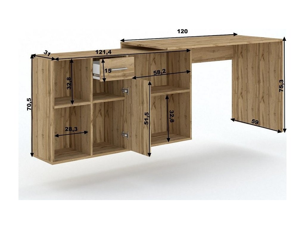 CASA 85015 Pracovní stůl skládací nejen do rohu je vyroben z desky LTD v barevném provedení dub wotan. Praktičnost stolu spočívá v jeho rozložení podle vašich představ. Obsahuje dvířka, zásuvku a spoustu úložného prostoru. Stůl je možné složit na pravou i levou stranu. Dodáváme v demontovaném stavu.