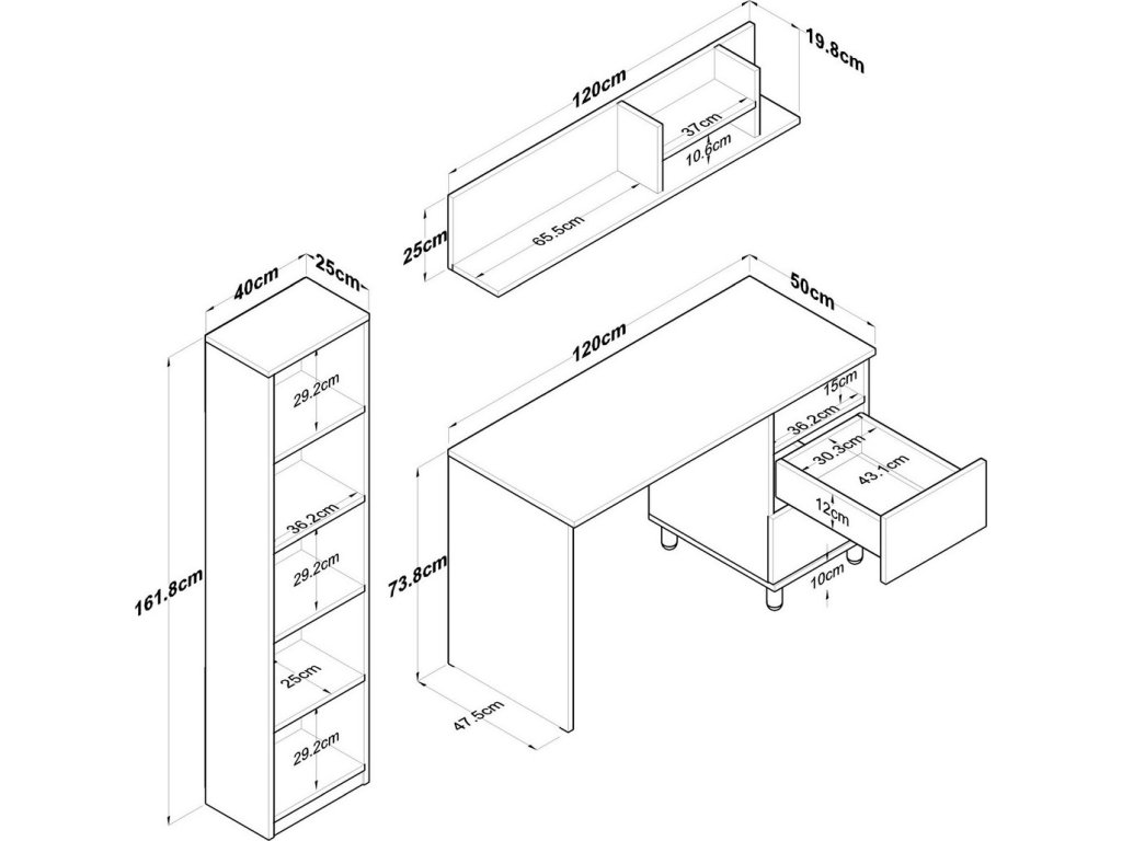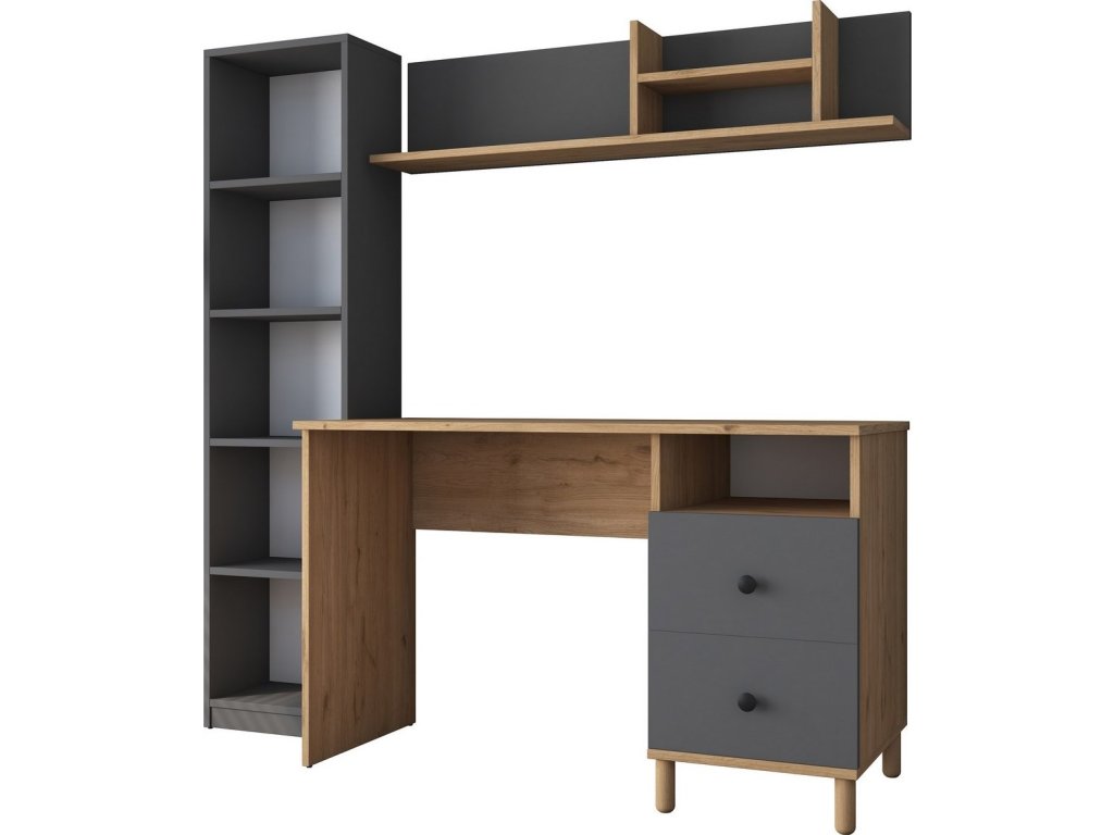 Moderní pracovní stůl navržený pro efektivní práci i studium. Tento elegantní stůl je ideální pro dětský pokoj nebo kancelář či pracovnu, čímž přináší do každého interiéru stylový a čistý vzhled. Materiál je Melamin, VT laminát (18 mm). Barevné provedení je ořech/antracit. Stůl nabízí 6 polic a 2 zásuvky pro praktické úložné místo. Kvalitní melaminový povrch zajišťuje snadnou údržbu a dlouhou životnost. Dodáváme v demontovaném stavu.