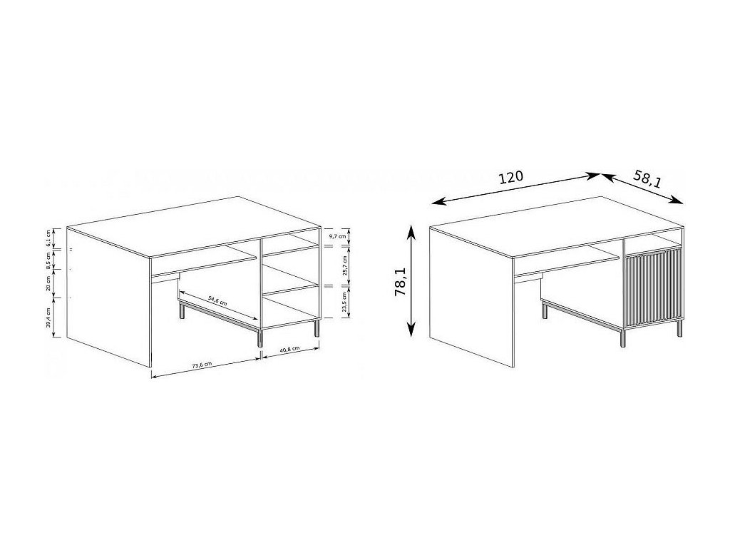 Nábytek je zdoben vzorem na čelních stranách v podobě frézovaných drážek. Všechny kusy nábytku z této kolekce stojí na černých kovových nožkách. Jednoduché a funkční tvary se hodí do obývacího pokoje, ložnice i jídelny.