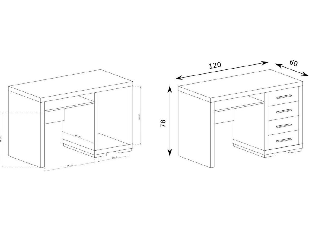 Pracovní stůl VEGAS kombinuje elegantní design s praktickým využitím. Nabízí čtyři prostorné zásuvky na pravé straně a výsuvnou desku na klávesnici.
