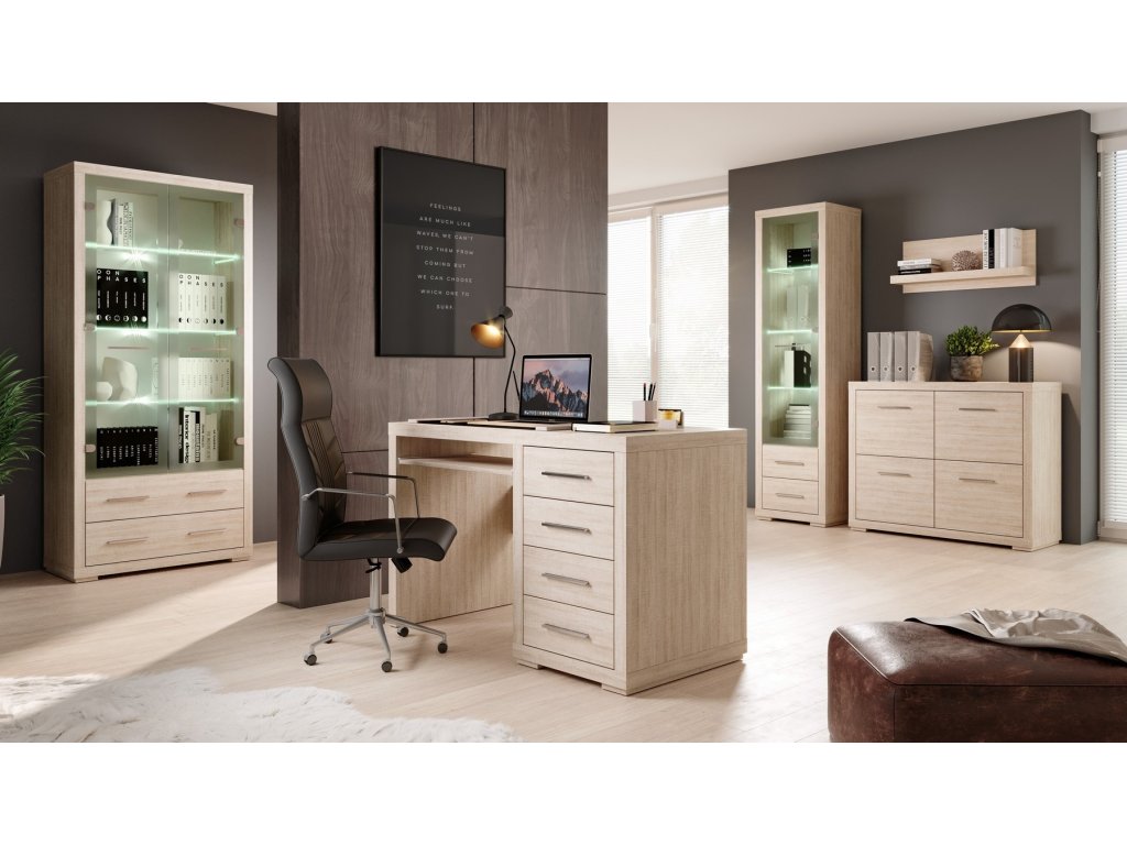 Pracovní stůl VEGAS je funkční a elegantní stůl určený pro domácí kancelář či pracovnu. Disponuje praktickou výsuvnou deskou na klávesnici a moderním designem s masivním vzhledem.