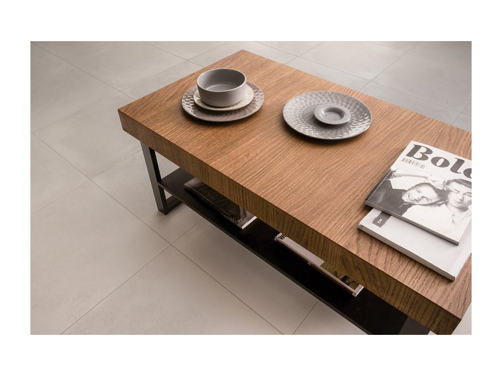 Konferenční stolek je obdélníkového tvaru. Disponuje otevřenou policí pro uložení časopisů, TV programu a podobně.