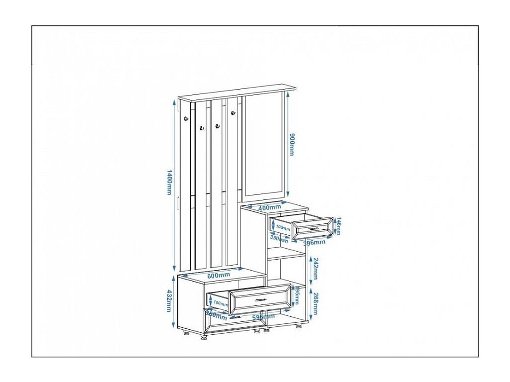 - Funkčnost: Zrcadlo, věšák, zásuvky a botník za dvířky – vše, co potřebujete pro uspořádání předsíně.