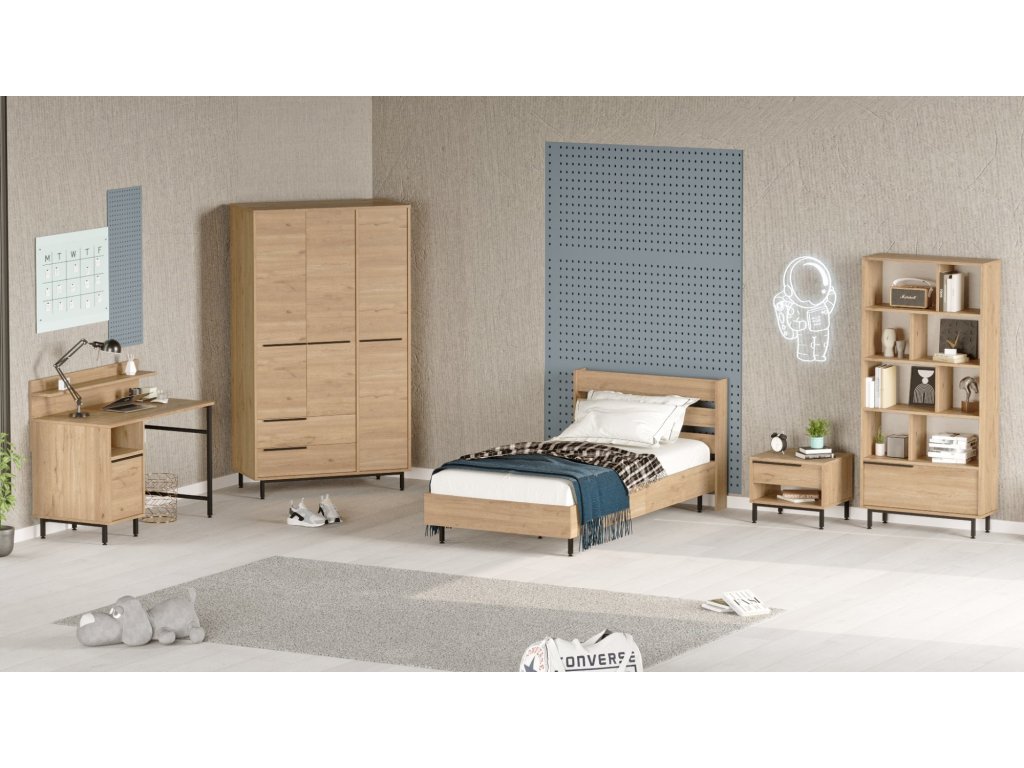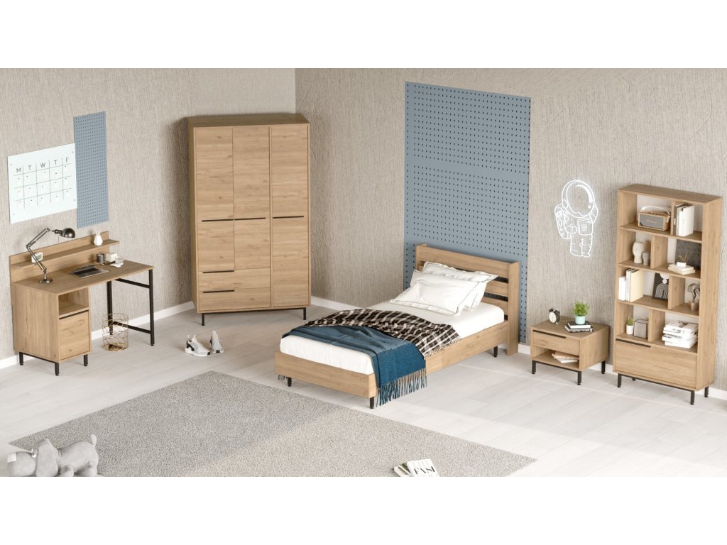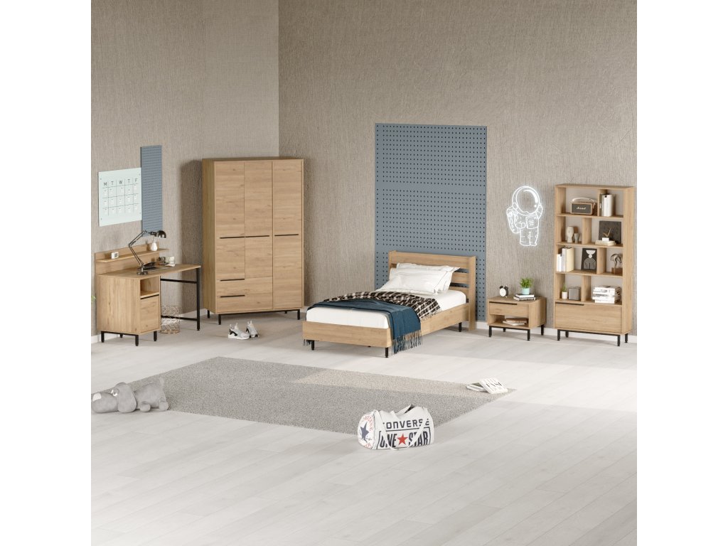 LONNY 24 kombinuje pohodlí a praktičnost. Postel poskytuje komfortní místo pro spánek, noční stolek je ideální pro lampičku nebo knihy, šatní skříň nabízí dostatek úložného prostoru pro oblečení a psací stůl zajišťuje ideální pracovní prostor pro studium nebo tvoření. Díky promyšlenému designu je tato sestava skvělým řešením pro organizovaný a stylový dětský pokoj.