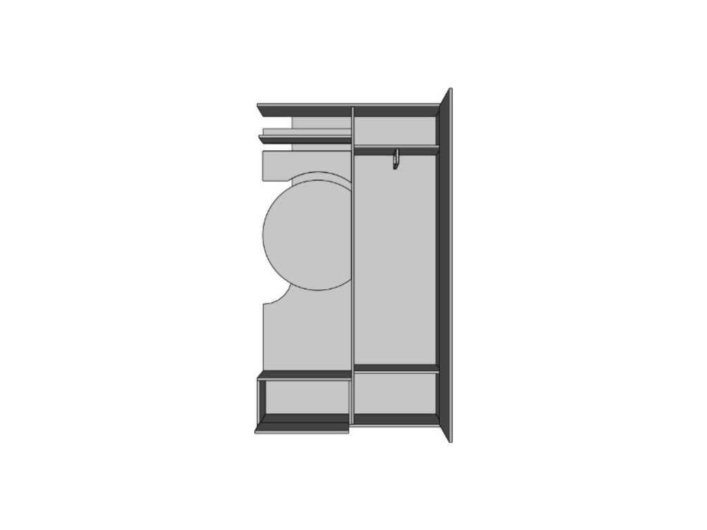 Předsíň nabízí dostatek úložného prostoru díky výklopné skříňce na boty a šatní skříni, která umožňuje přehledné uspořádání oblečení, kabátů či doplňků.