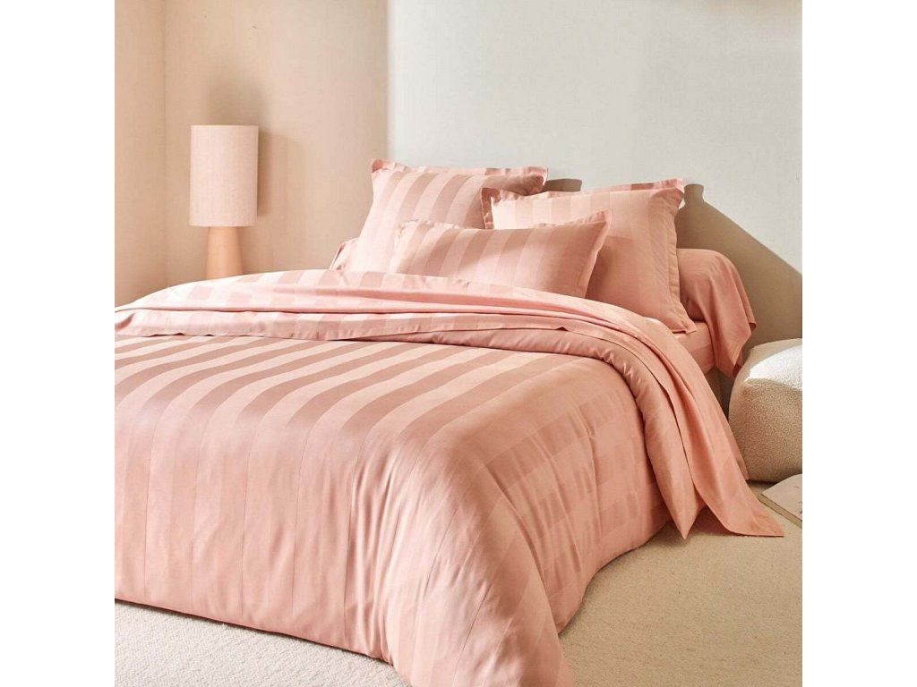 Saténové povlečení s lesklými pruhy je příjemné na dotek. Jemné, komfortní a hřejivé, navíc v dekorativním vzhledu. Z materiálu vybraného pro svou jemnost, lesk, pružnost a odolnost. Pevná a kvalitní tkanina. Stabilní rozměry a barvy odolné praní. Povlak na polštář s plochým volánem, čtvercový (63 x 63 cm) nebo obdélníkový (50 x 70 cm). Povlak na váleček. Povlak na přikrývku v typicky francouzském střihu ve tvaru lahve pro zasunutí konce pod matraci. Klasické prostěradlo. Napínací prostěradlo (hloubka rohů 32 cm). Certifikát Made In Green od OEKO-TEX®. Kromě ověření několika stovek chemických látek, které přispívají k vysoké bezpečnosti, toto označení zaručuje ohleduplné výrobní principy a kontrolované společenské postupy. Pro ochranu životního prostředí doporučujeme prát na 40 °C a sušit volně na vzduchu.