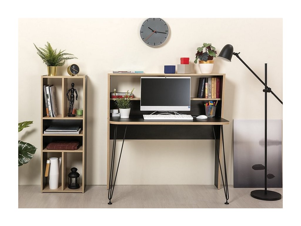 CASA 98260 Pracovní stůl s integrovanou policí je vyroben z desky LTD v barevném provedení černá/dub sonoma. Přední nohy stolu jsou kovové. Dodáváme v demontovaném stavu.