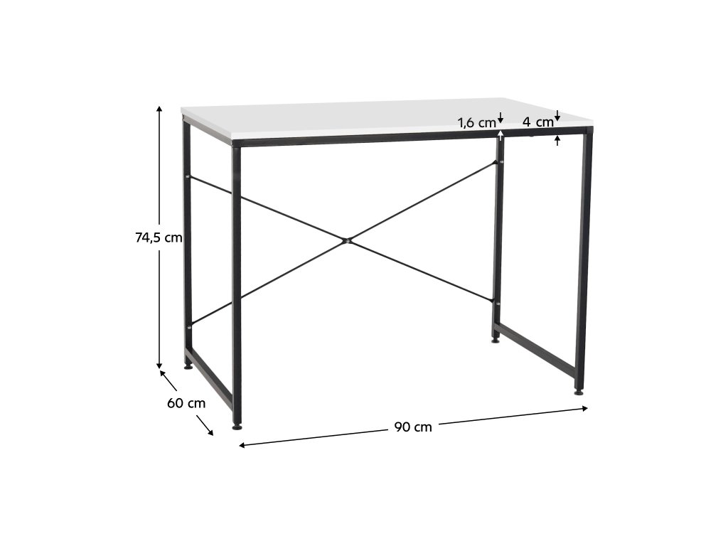 Materiál: kov / MDF laminovaná Barva: bílá/černá Rozměry (ŠxHxV): 90x60x74,5 cm Tloušťka materiálu: 16 mm Nosnost: 80 kg Rektifikační šrouby na nohách moderní design všestranné využití Dodávané v demontu