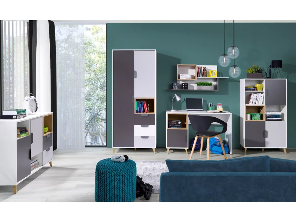 Psací stůl R14 je vyroben z lamina v krásném dekoru bílá, grafit, šedá a dub Lefkas. Lamino je odolné a jistě oceníte i snadnou údržbu. Psací stůl má praktickou skříňku s dvířky a také polici. Je dodávan v demontu. Součástí balení je montážní návod včetně všech spojovacích prvků.